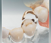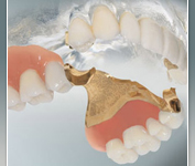Eine sehr hochentwickelte und komplexe Art der Prothetik stellt der kombiniert festsitzend-herausnehmbare Zahnersatz dar. Der Zahntechniker muss bei seiner Herstellung mehrere Disziplinen der Zahntechnik sicher und präzise beherrschen. Die abnehmbare Prothese wird über geeignete Verbindungselemente, wie z.B. Geschiebe oder Teleskopkronen, mit dem festsitzenden Zahnersatz verbunden (kombiniert). Die verdeckt liegenden Verbindungselemente sind unsichtbar und stellen eine ästhetische Lösung dar. Auf sichtbare Klammern kann somit verzichtet werden. Mit Hilfe von Teleskopen lassen sich auch große, abnehmbare Brücken realisieren, wenn eine definitiv festsitzende Versorgung aus den verschiedensten Gründen für Sie nicht in Frage kommt.